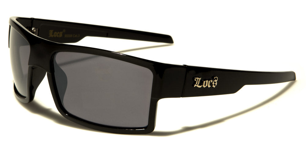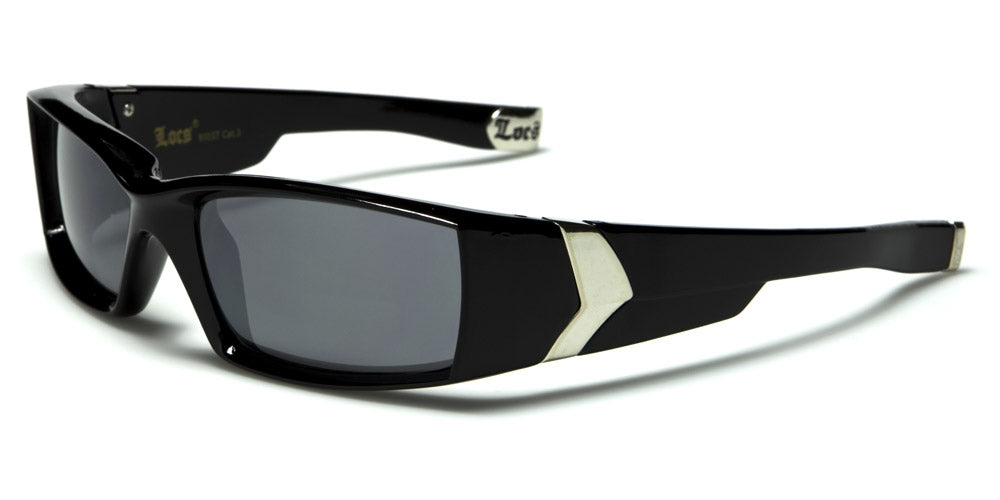 These Locs bulk sunglasses sport a flat-top frame design, rectangular lenses and the Locs logo...