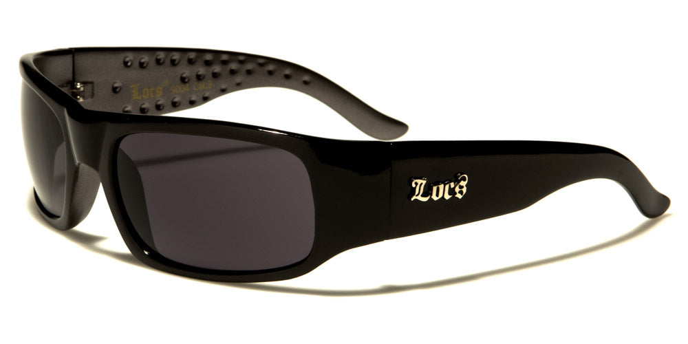 These Locs brand sunglasses are designed for men. They feature a thick black plastic frame...