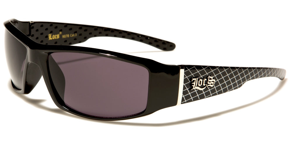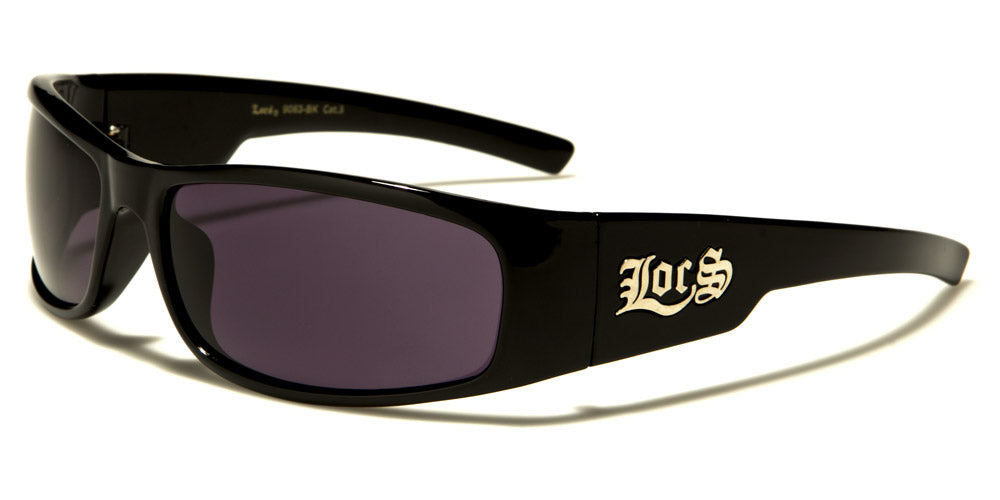 These men's sunglasses by Locs are from the gangsta line. The frame is thick plastic...