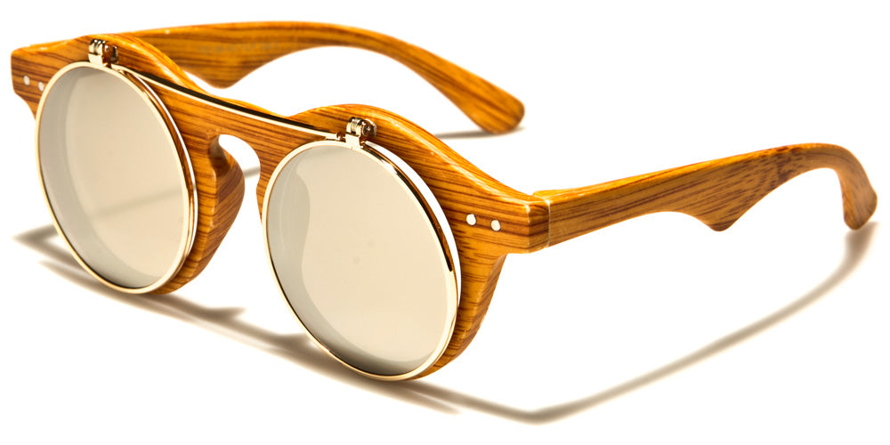 Round Flip-Up Wood-Print Sunglasses Wholesale P30198-WD-FLIP