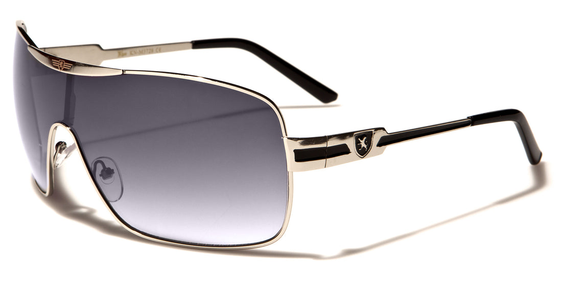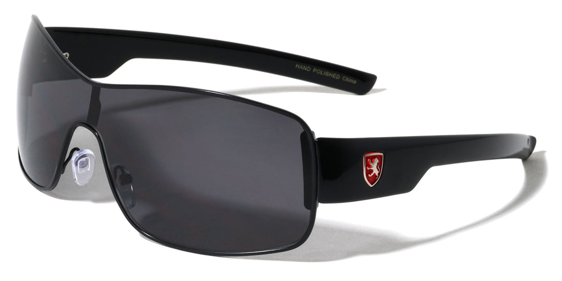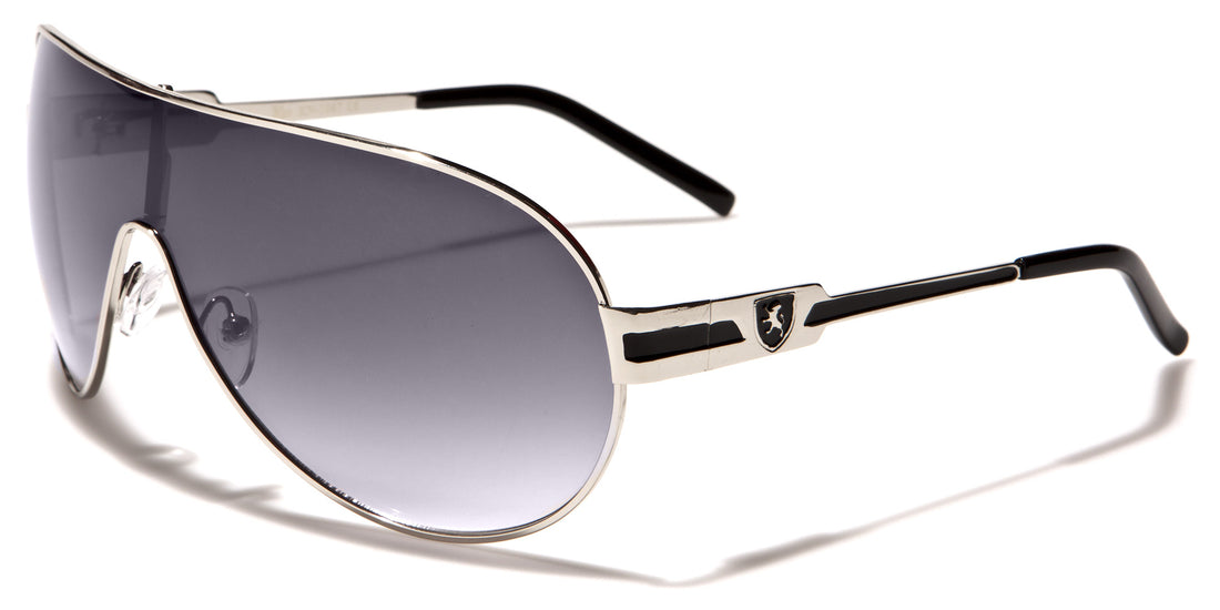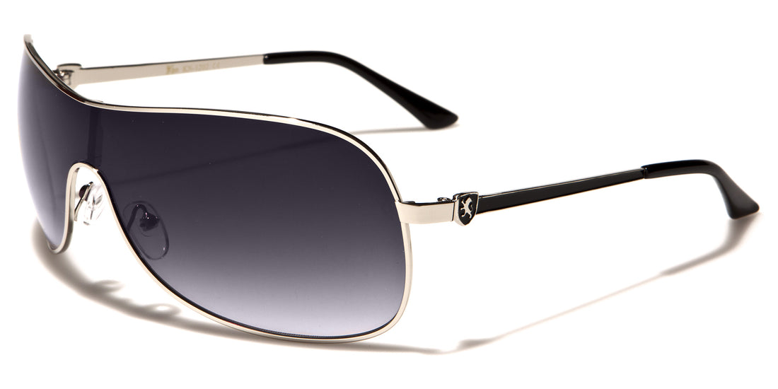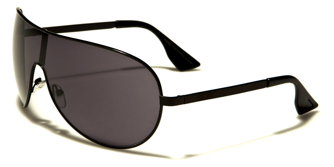 Oversized aviator sunglasses with a cool shield lens, these fancy shades by Khan are made...