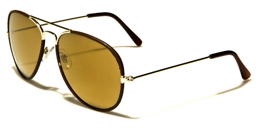 Leather Aviator Unisex Sunglasses Wholesale AV-1411-LTHR-CM