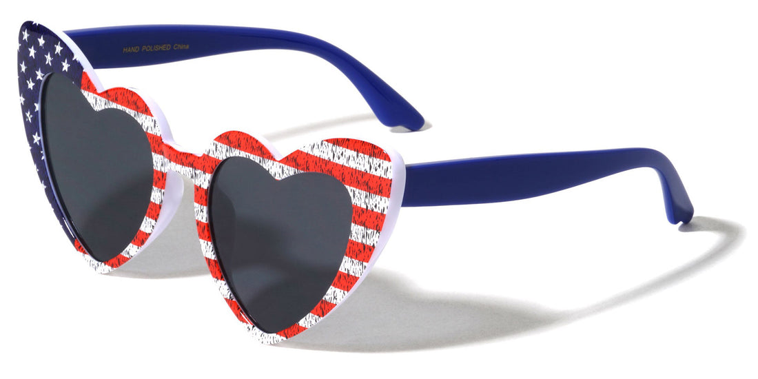 Heart Shaped USA Flag Wholesale Sunglasses P1088-HEART-FLAG
