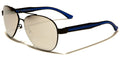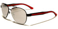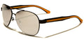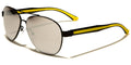 These aviators look good on both men and women. Their distinctive style gives just a nod to their sporty character without being too flashy. Metal rims attach to plastic arms that curve in a single piece into the moderately curved earpieces. Arms contain a colored stripe detail that stretches the entire length of the arm and earpieces. Light mirrored lenses reflect harmful UV rays and block glare. Rims and arms on all versions of these sunglasses are black, and you can choose the stripe detail that matches your personality and your wardrobe: gray, white, red, orange, yellow, or blue. These sunglasses are sold wholesale by the dozen.