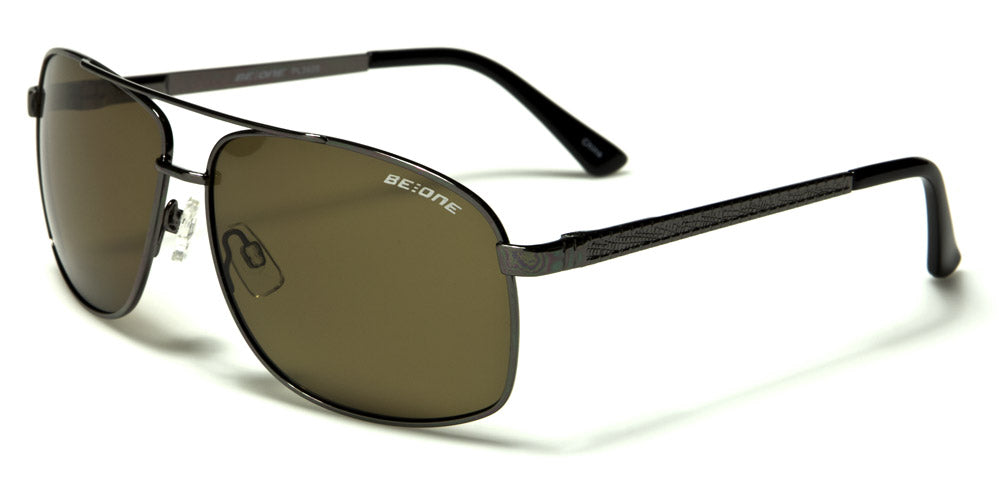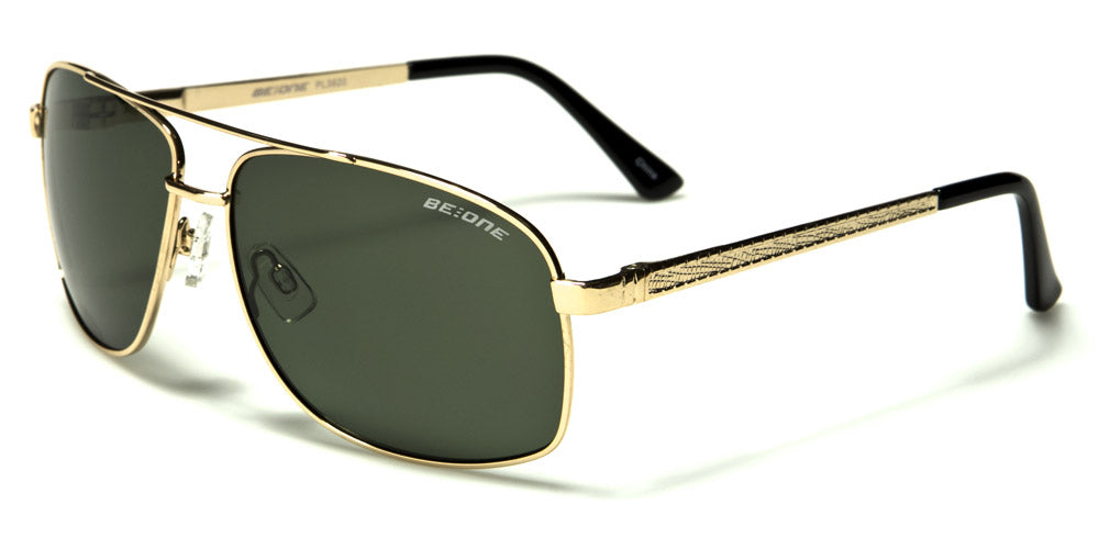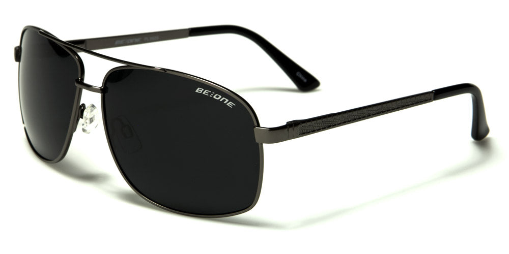 These BeOne men's polarized sunglasses feature an aviator style and offer UV400 protection, which helps prevent eye cancer and sunburns. They frames are made of metal, and the earpieces are made of plastic. Color choices include gunmetal frame with dark smoke lenses, gunmetal frame with gray lenses, gunmetal frame with green lenses, gold frame with green lenses, gunmetal frame with brown lenses, and bronze frame with brown lenses. These are available for purchase in boxes of assorted colors by the dozen, which is ideal for department stores, sunglass kiosks and other large retailers.