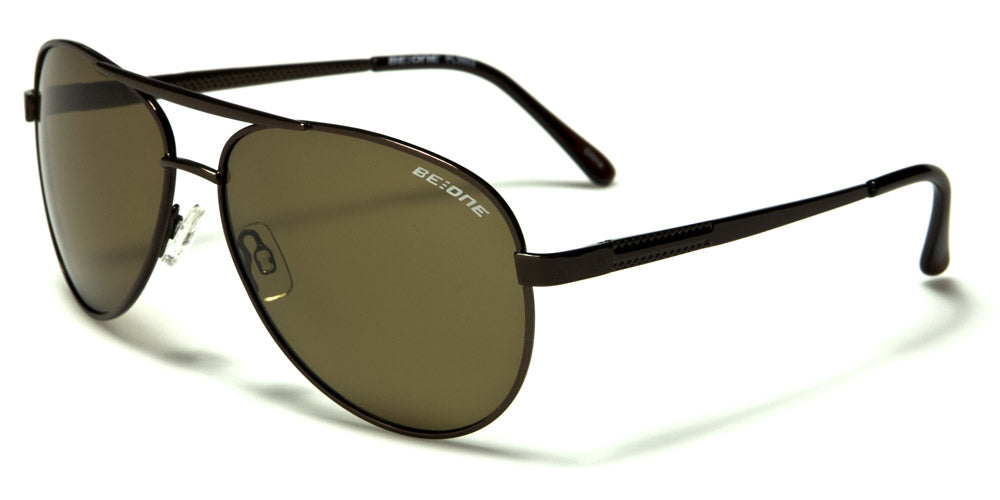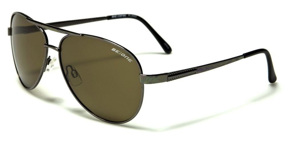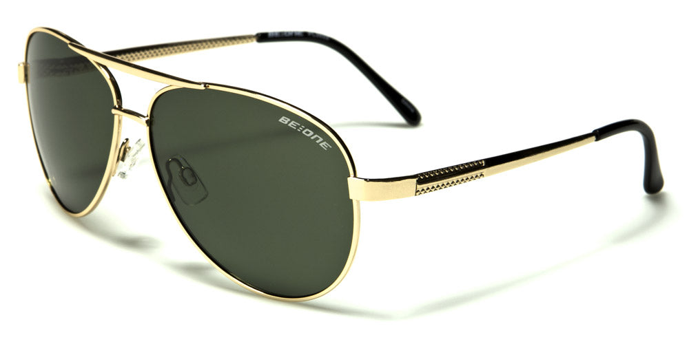 These BeOne men's polarized aviators offer UV400 protection, which helps prevent eye cancer and sunburns. The teardrop-shaped frames are made of metal. Color choices include gunmetal frame with dark smoke lenses, gunmetal frame with gray lenses, gunmetal frame with green lenses, gold frame with green lenses, gunmetal frame with brown lenses, and bronze frame with brown lenses. These are available for purchase in boxes of assorted colors by the dozen, which is ideal for department stores, sunglass kiosks and other large retailers.