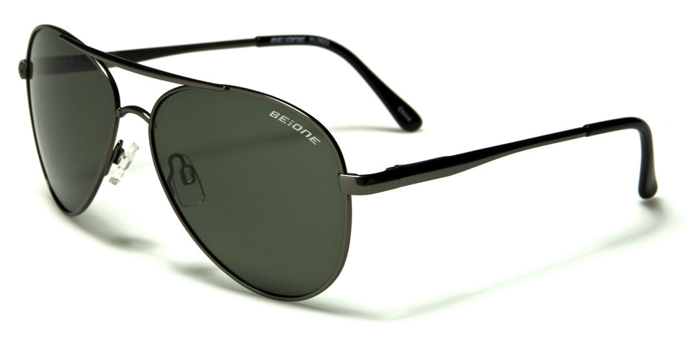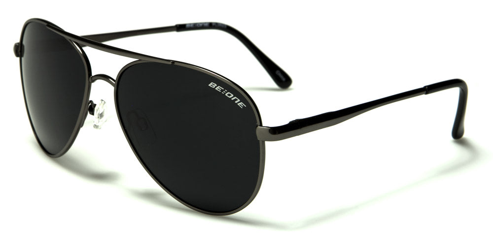 These BeOne men's polarized aviators offer UV400 protection, which offers maximum protection from the sun and helps prevent eye cancer. The teardrop-shaped frames are made of metal. Color choices include gunmetal frame with dark smoke lenses, gunmetal frame with gray lenses, gunmetal frame with green lenses, gold frame with green lenses, gunmetal frame with brown lenses, and bronze frame with brown lenses. These are available for purchase in boxes of assorted colors by the dozen, which is ideal for department stores, sunglass kiosks and other large retailers.