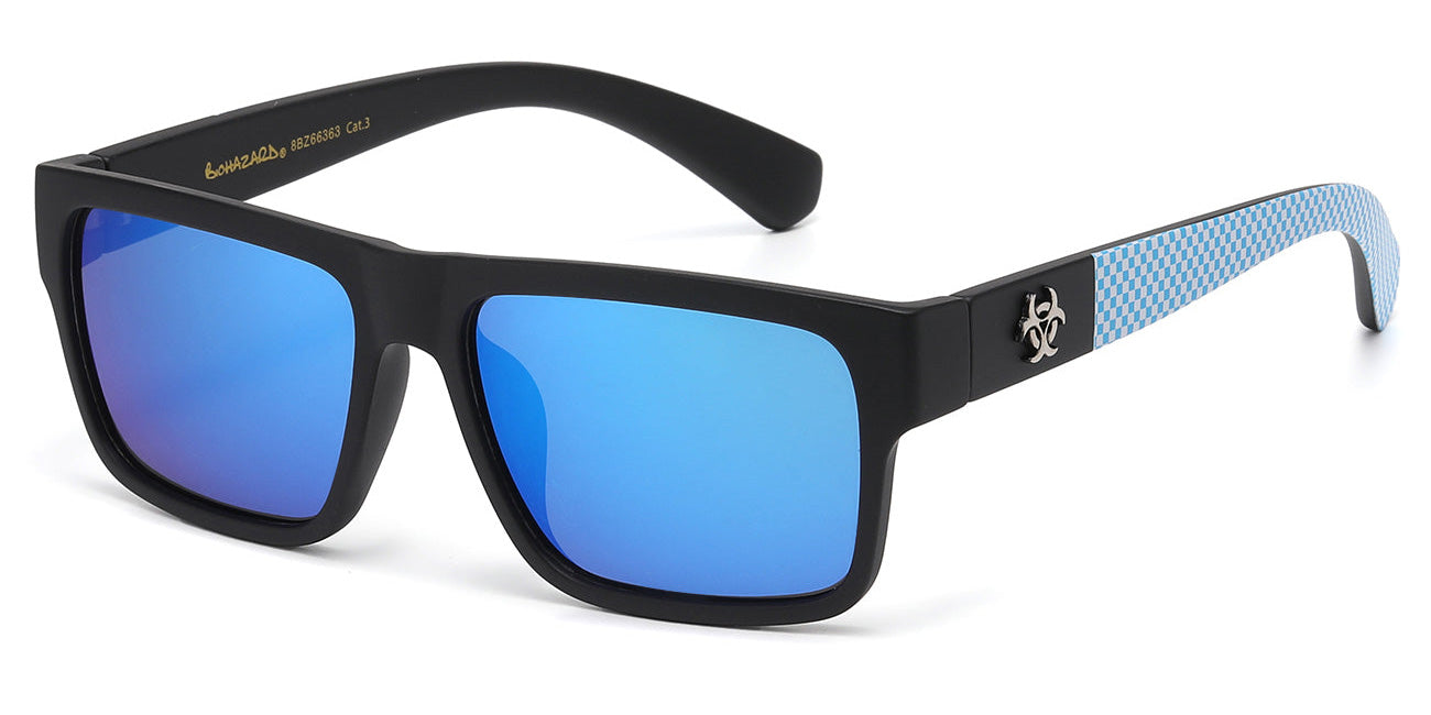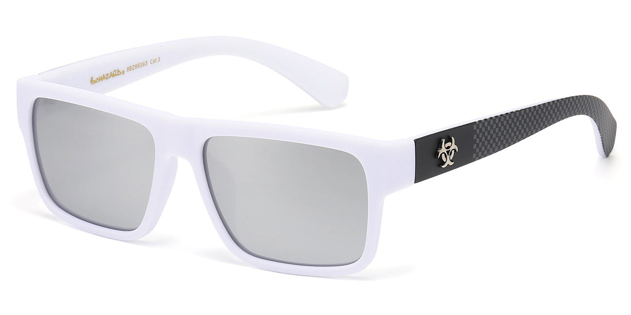 Add a bold, edgy accent to your eyewear assortment with these Biohazard checkered print temples sunglasses featuring full UV400 protection for reliable comfort in bright conditions. The striking checkered pattern paired with the graphic-inspired design makes this style especially appealing to customers who enjoy streetwear fashion, casual outings, festival looks, and everyday sunny activities — delivering standout flair with practical sun defense.