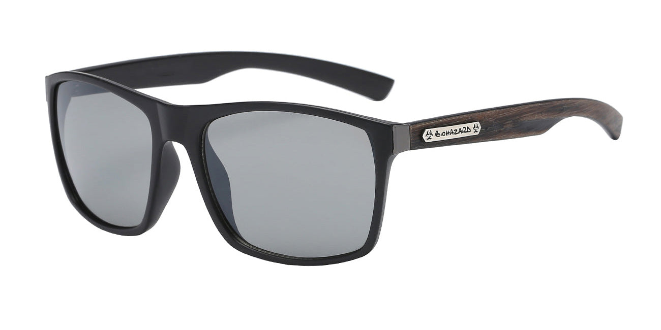 Add bold, edgy appeal to your men’s eyewear lineup with these classic sunglasses featuring a standout biohazard graphic and wood-print temples, paired with UV400 protection for everyday sun defense. The contrast between the graphic front and wood-inspired arms gives this style extra visual interest, resonating with trend-driven shoppers looking for something different.
