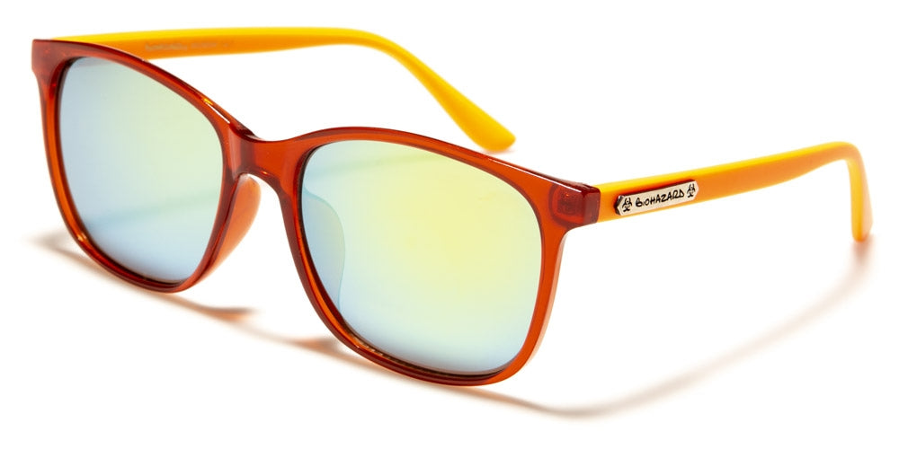 Your customers can look stylish and stay protected at the same time with these Biohazard classic men's sunglasses, designed to offer both visual appeal and functionality. These sunglasses have a trendy and fashionable design thanks to the classic frame, making them perfect for any occasion. By incorporating mirrored lenses, they provide enhanced protection from the sun while simultaneously offering a cool appearance for the wearer. With UV400-rated lenses, wearers enjoy comprehensive shielding from damaging UVA and UVB rays. Sold in wholesale units of twelve, each unit arrives in an array of the color options pictured.