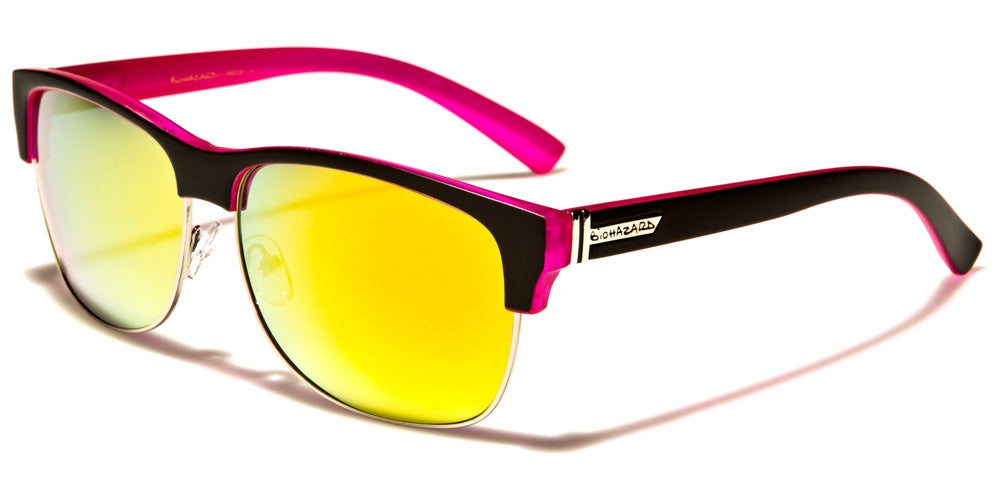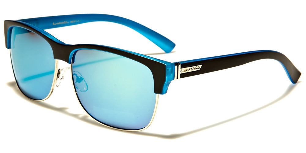 The style of these Biohazard classic unisex sunglasses will suit both men and women who want a trendy pair of glasses that provide both comfort and functionality. The plastic frame fit the face perfectly and the mirrored UV400 lens will protect the wearer from the sun's glare. Available in a selection of colors with a variety sent in each wholesale unit of twelve.