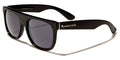 Biohazard has created a pair of unique and stylish retro sunglasses for men and women who want to look cool and who aren't afraid to show off their inner nerd. The frame is boxy and squared off up front, made of strong plastic that holds its shape. The arms are wavy with a curvy cutout section before the tapered earpieces. The Biohazard logo is seen on the side in stylized writing. The lenses are small and round with either a smoke or a mirrored finish.