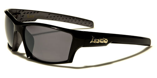 These Locs sunglasses are designed to accommodate men's facial features and highlight the playful Locs logo on the temple. Made of high-quality plastic, these sunglasses feature molded nosepieces and straight-style earpieces. Sunglasses vary with different shades of black that coordinate with gray lenses. Easy for merchandisers to resell, these sunglasses come in quantities of one dozen in assorted colors, which makes it simple for men to try on a variety of Locs sunglasses and find the right pair to compliment their features. Playful but protecting baby blues from harmful UV rays, these sunglasses are the ideal accessory for upscale department stores.