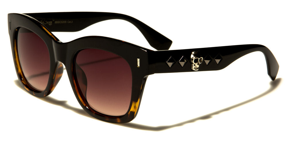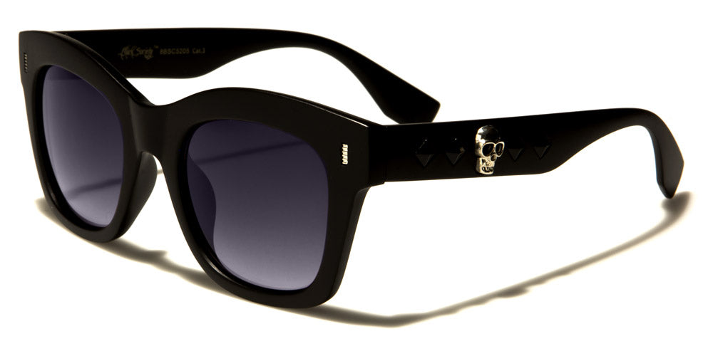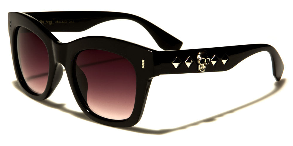 These Black Society round unisex bulk sunglasses are designed to mimic the latest fashion trends. Made of plastic, these sunglasses boast UV400 protection, which helps protect baby blues from harmful UV rays. These spectacular sunglasses feature unique diamond-rivet designs as well as a telltale skull on the arms. These sunglasses are available in black and brown tortoise. Lens colors include gray, gradient smoke and brown. These sunglasses are excellent for retailers, boutique stores and other trendy establishments.