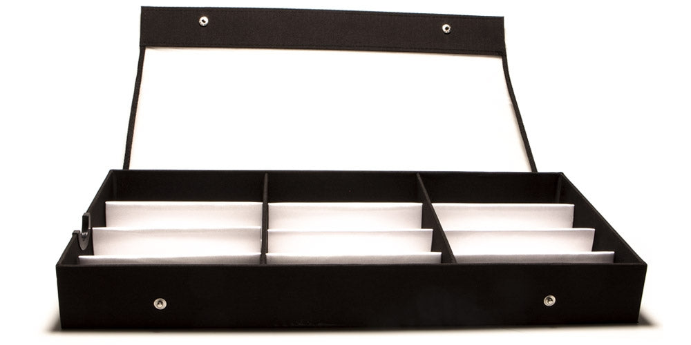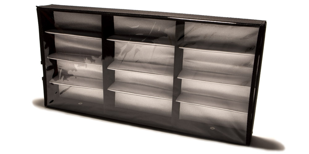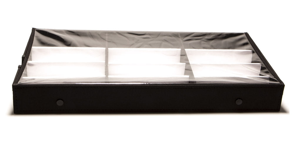This fabulous sunglasses display tray storage organizer is ideal for those who collect glasses and sunglasses and need a safe place to store those they are not wearing. This tray is soft and lightweight and provides the perfect storage solution for twelve pairs of sunglasses. It has a see-through cover that will protect against dust and make it easy to see the items inside. This product is sold wholesale.