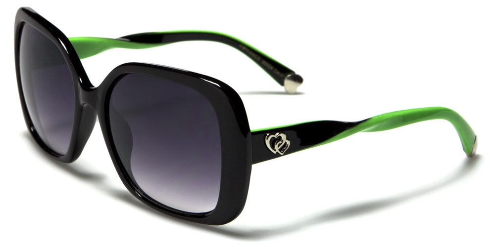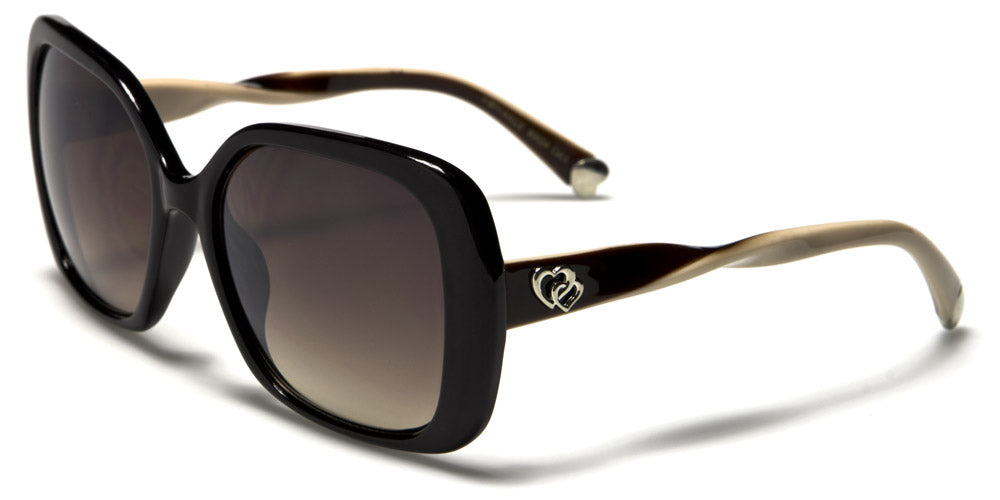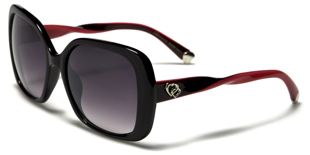These Romance wholesale sunglasses feature a rectangle butterfly style and are made of high-quality plastic. Designed to appeal to women, these trendy wholesale sunglasses feature double-heart emblems, which add a special touch of class to these popular Romance sunglasses. These sunglasses are available in bulk and come in a mixed variety of black, brown, burgundy, blue and gray. With a retro appearance, these polished sunglasses feature a slight twist to the earpieces, which give them an unusual, upscale appearance. These sunglasses are ideal for department stores, boutiques, mall kiosks and other high-end retail establishments.