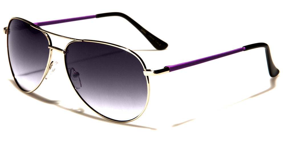 These CG aviator unisex sunglasses are made of metal and plastic and offer UV 400 protection from the sun. Featuring adjustable nose and earpieces, the sunglasses are available with silver or gunmetal frames, gradient smoke or gradient brown lenses, and arms that come in white, red, teal, blue, purple, brown and orange. The sunglasses are sold in quantities of one dozen per box. They are perfect for selling at retail stores, boutique shops, flea markets, convenience stores and state fairs.