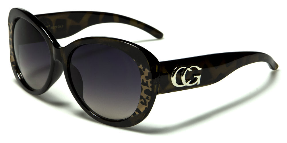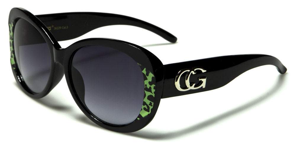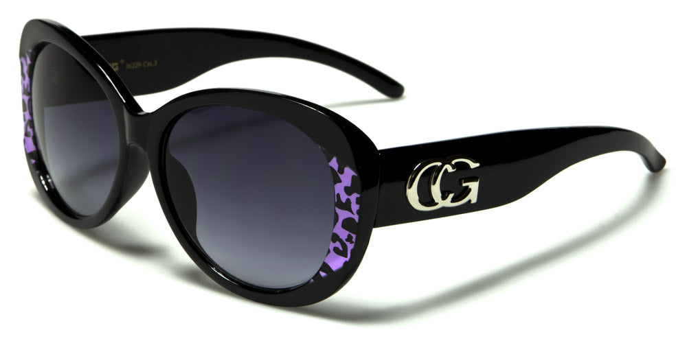 CG brand sunglasses are one of our most popular sunglasses brands for women. These wide oval-shaped lenses come in gradient smoke and amber smoke. The frame is patterned with colorful Dalmatian prints along the outer edges of the frame. The thick arms feature the classic CG logo. Not only are these CG brand sunglasses stylish, they provide UV400 protection from even the tiniest UV rays. Check out our other CG wholesale sunglasses for women.