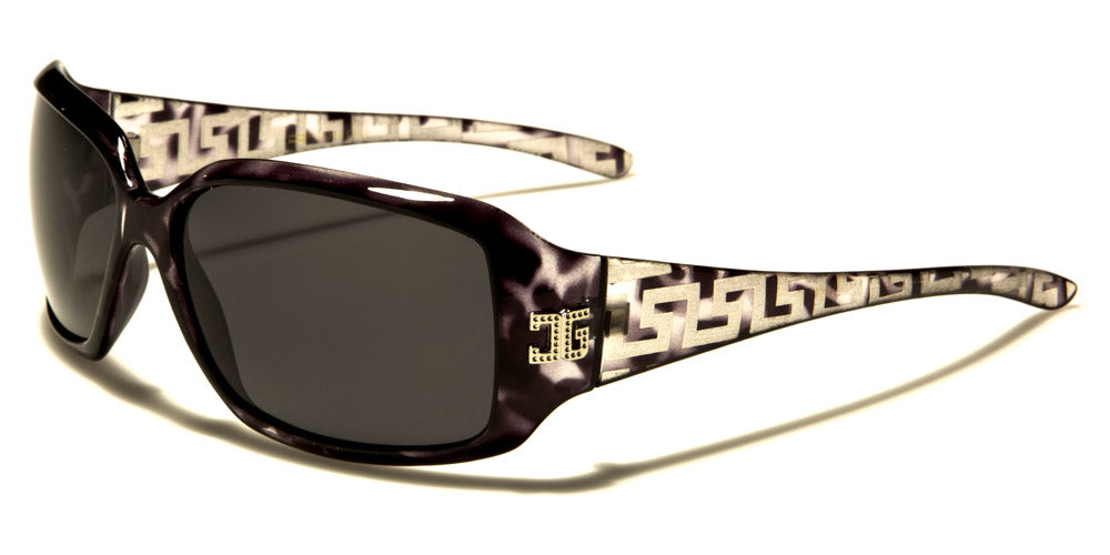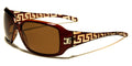 These CG women's polarized sunglasses feature a rectangular style and are made of plastic. Highlighting a polarized UV400 lens, these sunglasses help protect baby blues from harmful sunrays as well as cancer and sunburns. These sunglasses feature a Greek keyhole design on the sides. Colors include black and clear, gray tortoise, brown and gold, dark brown and gold and brown tortoise. This style is a for-sure seller in women's boutiques and department stores.