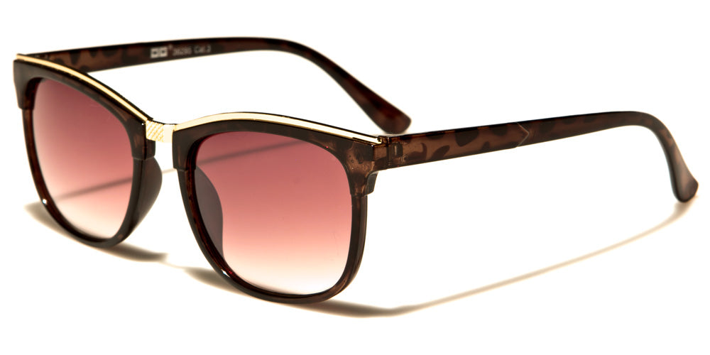 Made from lightweight, yet sturdy plastic, these CG sunglasses offer sturdy and comfortable eye protection for all-day wear. They hold strong to the classic, retro look but add an extra vintage flair with an accented gold browline. Boxes of 12 include an assortment of black and brown printed frames with either solid gray coatings or colored gradient lenses in pink or gray tint.