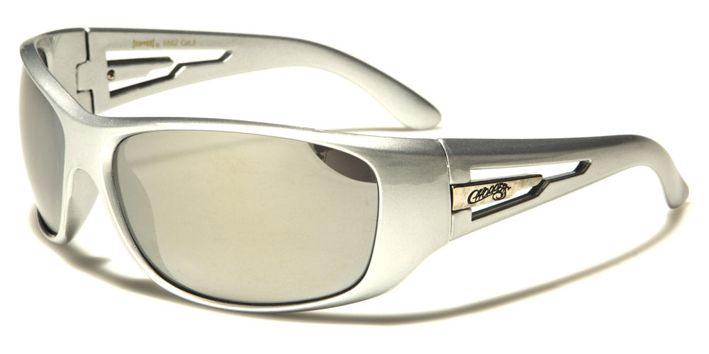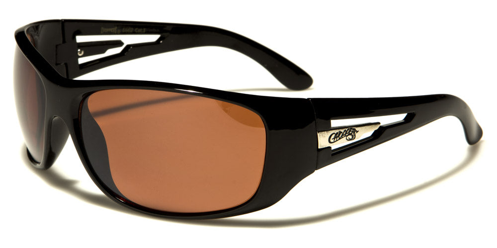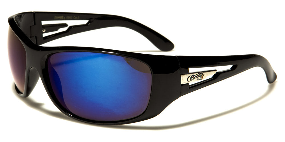 Choppers designed a tough looking pair of men's sunglasses that are strong enough to stand up to the road or any other activity you are doing. The frame is solid plastic molded in a curved shape for better fit. The frame comes in black or silver. The arms feature a cool cutout section on the side next to the Choppers logo. The lenses are large and oval with either smoke, brown or mirrored finish for better protection for your eyes. Choose from several lens colors and purchase in bulk for additional savings.