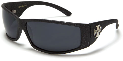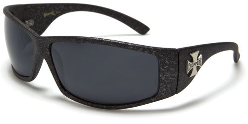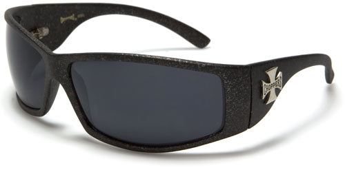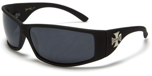 Choppers brand knows how important it is to protect your eyes while you ride, and it makes sturdy and rugged sunglasses for men that do just that. These great shades have a rounded shape that hugs the contours of your face and head to ensure a solid fit. The frame is made of strong plastic that holds up to rough treatment. The arms start thick and taper sharply to the curved ear and feature the Choppers logo in silver and black on the side.