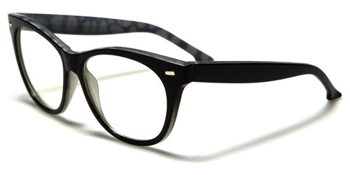 Nerdy is the new cool, and with these nerd cat eye glasses you can be both at once. Specially designed for women, these hip glasses feature a flat front with cat eye style lenses. The lenses are clear and offer ultraviolet protection. The frames are plastic and made to fit the contours of your face comfortably and snugly. Choose from a variety of colors and prints to personalize these glasses to your own unique sense of style.