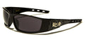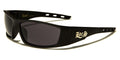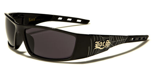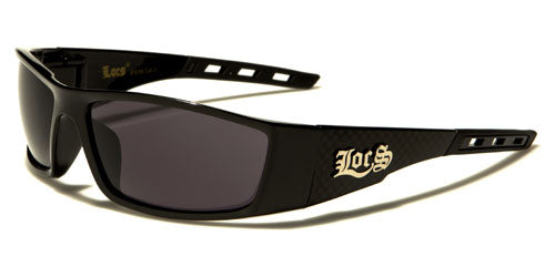 These men's Locs sunglasses add mystery and style. The wholesale sunglasses bear the classic Locs logo with a variety of backgrounds, wide temples that taper off to the slightly curved earpieces. The earpieces themselves bear a strip with punched rectangles. The lenses are rectangular in shape. The lightweight plastic, fitted nosepieces and the slight curve in the rubberized earpieces provide a secure fit. The wide frames strike a distinctive figure as it snugly wraps the sunglasses to a man's face. These wholesale sunglasses primarily come in black, but are available in a variety of patterns. Get these designer sunglasses wholesale at one dozen per box.