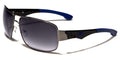These sunglasses by Dxtreme are made for men and have a futuristic and stylish design. The frames are made of metal, and the arms are made of plastic, giving the glasses durability and flexibility while remaining lightweight and comfortable to wear. The arms feature a unique jointed look and sport the Dxtreme logo before tapering to a slight curve at the ear. The arms are two-toned, highlighting the noticeable construction. The lenses are rectangular and dark, affording privacy and ultraviolet protection.