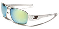 Dxtreme has created a pair of truly memorable sunglasses with these shades for men made of metal and plastic. The arms are thick plastic and start off from the middle of the lenses, then step down slightly and move straight back to the earpiece. The side of the arm features the Dxtreme logo in a highlight color. The color-mirror lenses are rectangular and are tinted to offer maximum privacy and ultraviolet protection. These sunglasses are available in a variety of lens and highlight colors for all tastes.