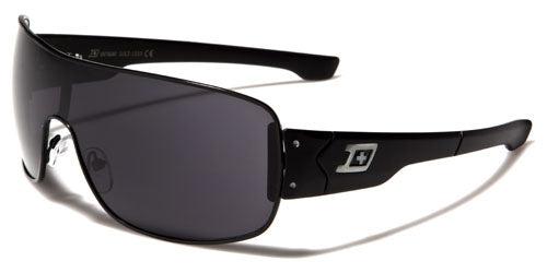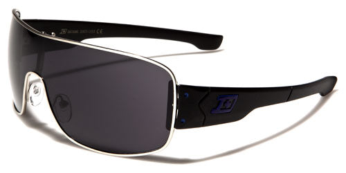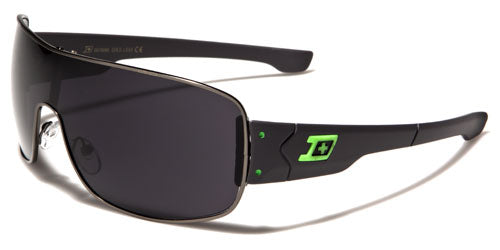 Dark and stylish, these wraparound shades by Dxtreme are made for men with attitude. The lenses are one piece with a thin section in the middle and sport a shield look and feel. The frames are made of metal and feature an industrial flavor. The plastic arms have the Dxtreme logo on the side along with joints and rivets, with a step down and taper to the ear. The lenses are dark smoke, offering privacy to the wearer and protection from ultraviolet rays. These shades are available with different highlight colors, including gray, red, yellow, green and blue.