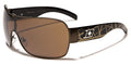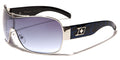 Dxtreme really has gone overboard on style with these sweet sunglasses for men that redefine style and attitude. The frame is metal around the large lenses, and the arms are plastic, so the shades are lightweight, but strong and durable. The arms start thick and taper through a curve toward the ear. The arms feature a cool colorful pattern on the side and sport the Dxtreme logo in silver and black. The lenses are in the shield style and offer excellent ultraviolet protection.