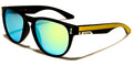 These DXtreme unisex classic sunglasses are a popular model this season. They come in a wide selection of colors, including silver lenses with black frame and gray arms, revo orange lenses with black frame and red arms, revo yellow lenses with black frame and yellow arms, revo green lenses with black frame and green arms, revo blue lenses with black frame and blue arms, and revo pink lenses with black frame and purple arms. The sunglasses are sold in bulk by the dozen.