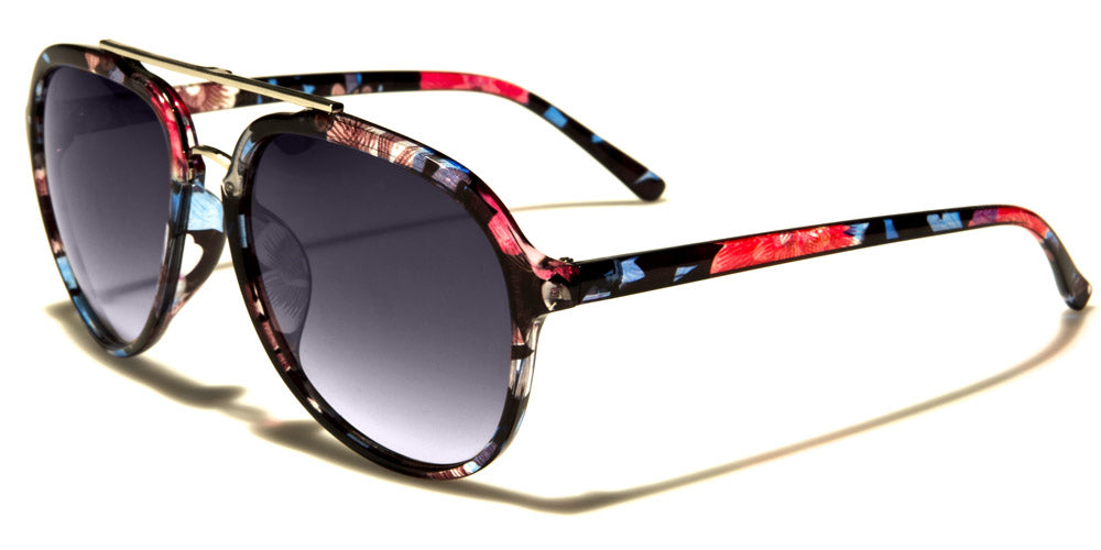 These Eyedentification aviator sunglasses are ideal for today's modern women and men. They feature a classic, timeless shape and are made of plastic. Additionally, they offer the safety of UV400 protection, helping protect eyes from harmful ultraviolet rays. The frames are available in black, brown, brown tortoise and a colorful floral print. Additionally, they feature the following lens colors: gradient smoke, amber smoke and gradient brown. They are available for purchase by the dozen, which makes them easy for retailers to resell. This style is ideal for women's and men's boutiques and department stores.
