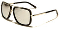 These are aviators for the modern era! Stylized mirrored aviator lenses get a bold look from thick plastic frames. Thick wire creates a double bridge, and more metal ribbon overlays the edge of the frames along the top half of the lenses. Metal hinges and metal bar arms connect to long plastic earpieces. Enjoy a variety of the six options available with this style in your order, including: black frames and earpieces with light gray lenses; black frames and earpieces with black lenses; black frames and earpieces with medium gray lenses; tortoiseshell frames and earpieces with rose lenses; tortoiseshell frames and earpieces with brown lenses; and black frames and earpieces with blue lenses. These sunglasses are sold in bulk by the dozen.