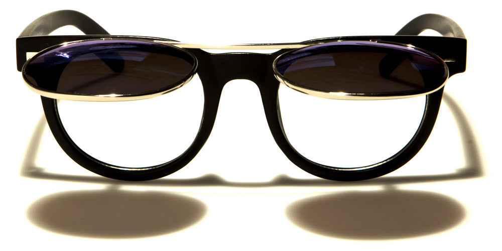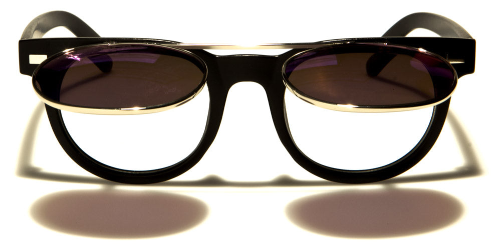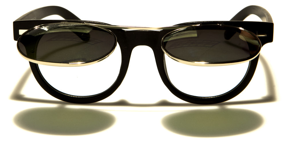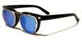 These nostalgic Eyedentification sunglasses feature a classic, timeless shape. Made for women and men, these unisex frames are plastic with metal wiring around mirrored lenses. Additionally, they offer the safety of UV400 protection, helping protect your eyes from harmful UV rays. These sunglasses are available with black frames. Additionally, they feature the following lens colors: revo orange, bronze, revo green and revo blue. They are available for purchase by the dozen, which makes them easy for retailers to resell.