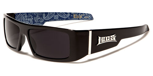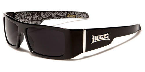 Locs knows style, and these nice shades for men have a look and attitude of their own. The frame is strong and durable plastic with a squared-off look. The arms are thick and feature a cool bandanna pattern on the inside. They also have a step-down taper, then flow straight back to the ear. The Locs logo and a silver vertical divider are seen on the side. The lenses are small and dark with a protective finish that blocks out harmful ultraviolet rays and gives you excellent privacy.