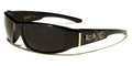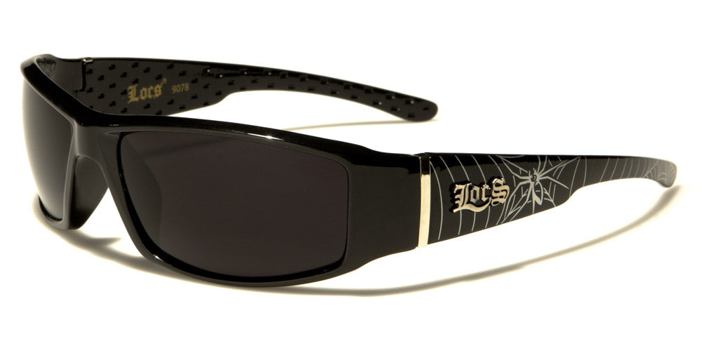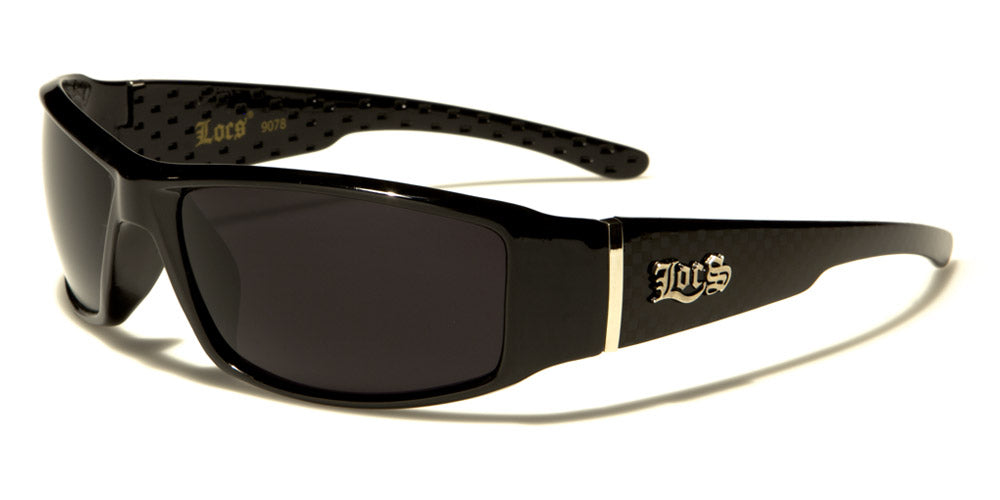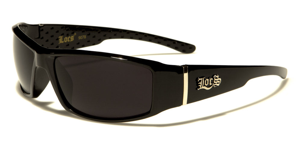 The inner portion of the arms of these nice shades for men by Locs have a cool texture that helps keep the sunglasses on your head in a comfortable way. The overall shape is rounded with a molding that is designed to fit your head. The frame is made of plastic, designed to be durable, yet lightweight, and able to stand up to rough use. The arms sport the Locs logo in raised silver letters. The lenses are dark rounded rectangles with an excellent protective finish.