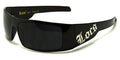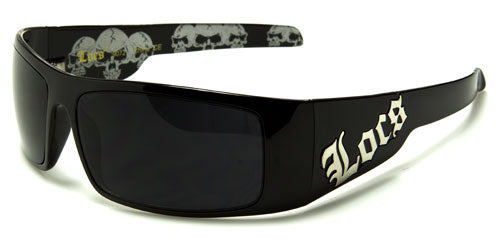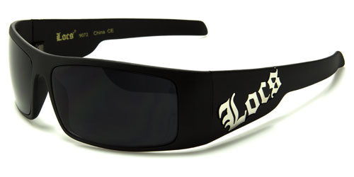 Try these sweet shades on for size, and you'll never go back. Made by Locs for men, the sunglasses have a contoured shape that fits your head comfortably and tightly to stay on easily. The frame is strong plastic with a durable and flexible composition. The arms start thick and taper to the straight earpieces, and the Locs logo is seen on the side in large letters. The lenses are dark rectangles that fit a face nicely and block out the sun.