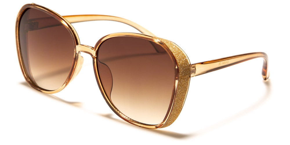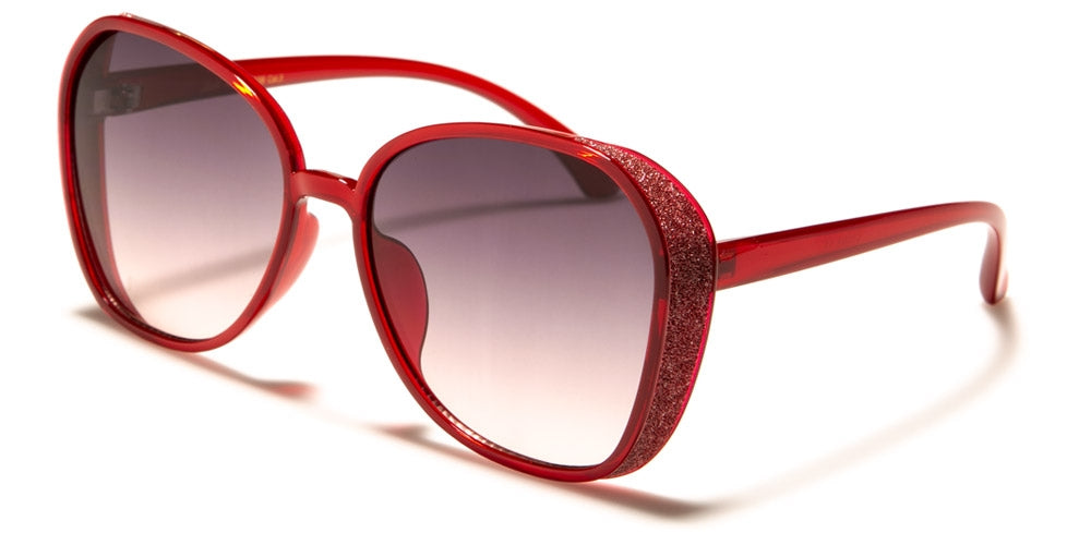 These fashionable Giselle oval women's sunglasses will appeal to those who love to add some bling to their outfits. The sparkly frames are feminine and flattering and will suit most face shapes, almost ensuring these will be a hit with your female customers. The lightweight plastic frame is durable and comfortable and houses lenses that have been incorporated with UV400 to ensure complete protection for the eyes. These shades are sold in wholesale packages of twelve pairs, with each package containing an assortment of the colors pictured.