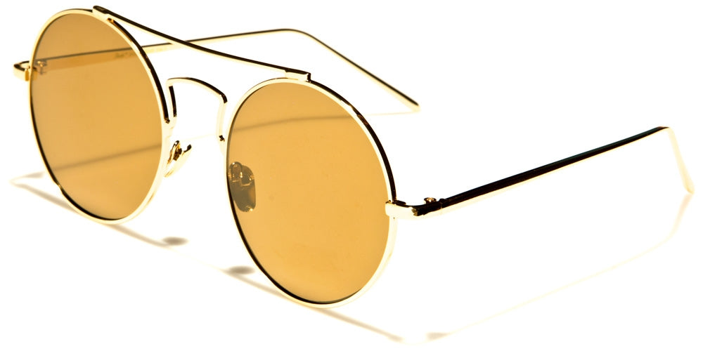 This pair of Giselle round women's sunglasses is perfect for those who love small, dainty frames. The thin metal arms provide a comfortable fit over the ears while the stylish brow bar will create an instant air of style and sophistication. With a selection of colors available, each bulk order of 12 pairs per unit will contain a variety of colors.