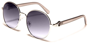 The youthful, retro chic of Giselle. A swing back to the 60s and 70s, these Giselle round women's sunglasses feature a quirky design with vibrant color schemes, including funky animal prints. As always, these Giselle shades offer wearers the ultimate protection from harmful sun rays via UV400 technology incorporated in the lenses. With delicately tinted lenses in a variety of hues as well as a metal and plastic frame design to match, these sunglasses will be a standout accessory and a must-have for spring and summer outfits alike. The sunglasses are sold wholesale by the dozen, in a range of the colors seen here.