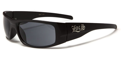 With a low profile and a solid look, these sunglasses for men by Locs scream toughness and attitude. The frame is made of black plastic with either a matte or a glossy finish. The arms come straight off the temples and taper down to the straight earpieces. The Locs logo is seen on the side in scripted letters. The lenses are small and dark and offer excellent UV protection to your eyes. Buy these shades in bulk for great savings and have enough to share with all your friends.