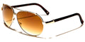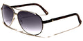 These Khan aviator sunglasses for men and women are made of both metal and plastic. They feature a UV400 coating to help protect eyes from the sun's harmful rays. Both men and women will not only be fashionable, but well protected with these classy designs. Frame colors include gunmetal, silver and gold; and the lenses come in gradient smoke and gradient brown. These are available in quantities of one dozen per box.