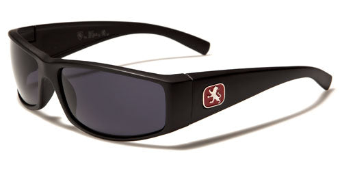 These sunglasses for men by Khan are sleek and slim, giving an austere and studious look and feel. The lenses are rectangular and are smaller, fitting nicely with the overall shape of the frame. The frame is made of plastic that is strong and lightweight, so the shades are comfortable and fit lightly on your head. The arms sport the Khan logo in silver on the side and have a smooth curved taper down to the earpiece. Purchase these shades in all black, white or brown in the dozen.