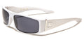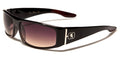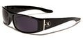 Stylish and cool, these slim sunglasses for men are designed by Khan. The frame is made of durable plastic, and the shades are available in a variety of colors and highlights. The arms are thick and come off straight from the face, then taper smoothly to a slight hook at the ear. The Khan logo is prominently displayed on the side next to a vertical silver divider bar. The lenses are rectangular in shape and are tinted for added privacy and ultraviolet protection.