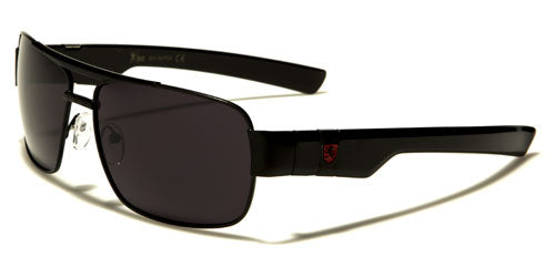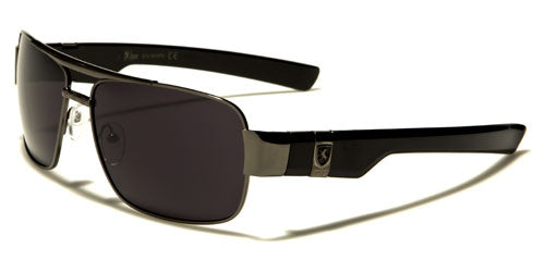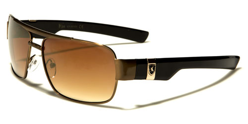 What's not to love about these Khan bulk sunglasses? These sunglasses sport the semi-aviator style with metal rims and plastic stems. The thin, metal rims are supported by a straight double bridge and solid end pieces. The glasses also have a pair of transparent and adjustable nose pads. The thick stems feature the Khan logo - a rearing lion inside a shield. This logo is placed inside a metallic accent. The earpieces are formed with straight angles. The rims come in black, gunmetal, silver and copper, and the stems are black. Made of high-quality materials, these provide a comfortable fit and UV protection.