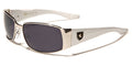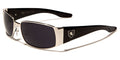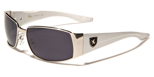 Nice and sleek, these shades by Khan are designed for men who want to show off their individual style in a subdued way. The sunglasses are made of metal and plastic, rigid where they need to be and flexible enough to fit comfortably. The arms start thick from the temples and taper smoothly to the slightly curved earpieces. The Khan logo is displayed on the side of the arms. The lenses are small rectangles with a dark finish to protect your eyes and your privacy.