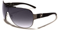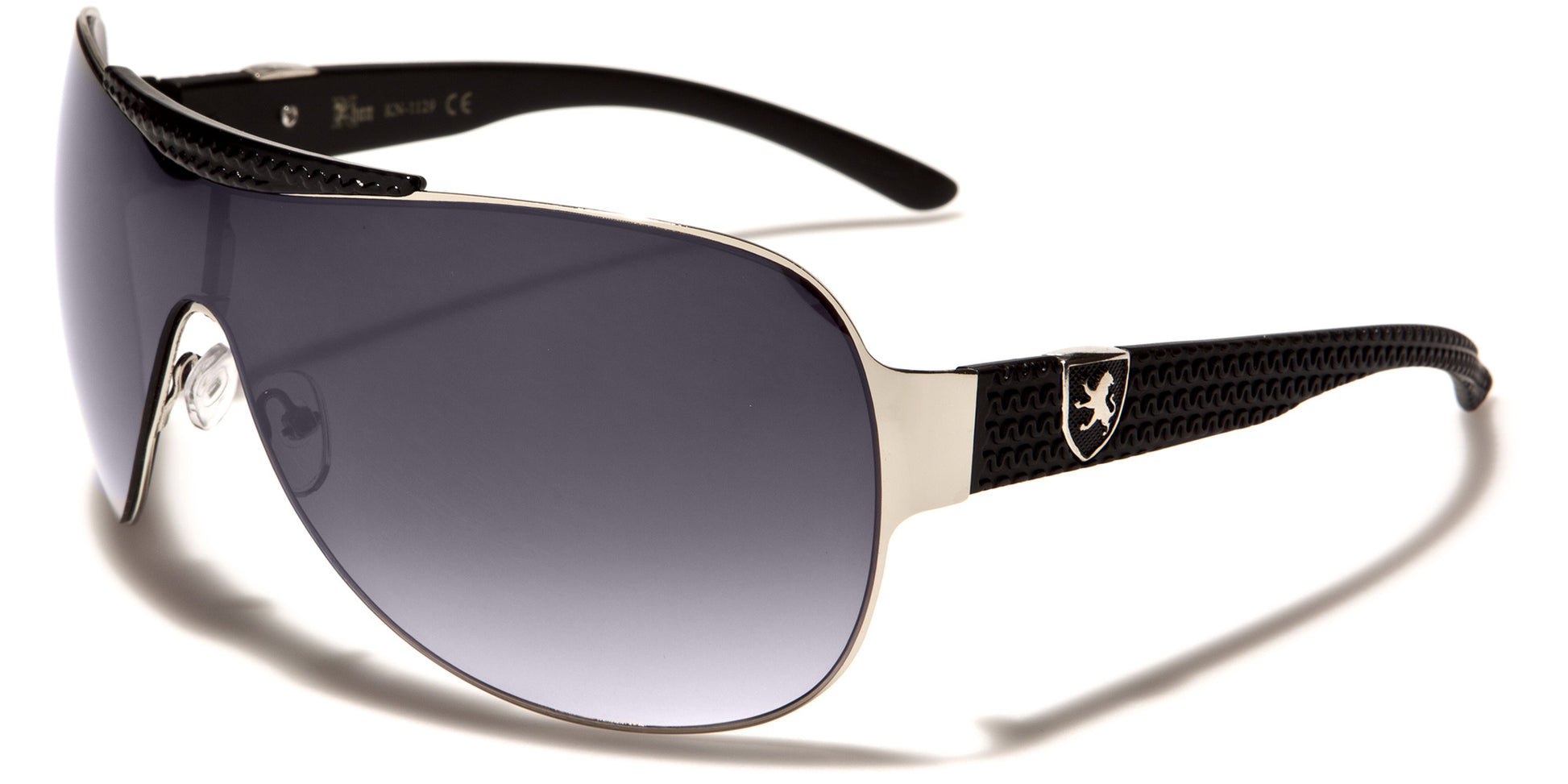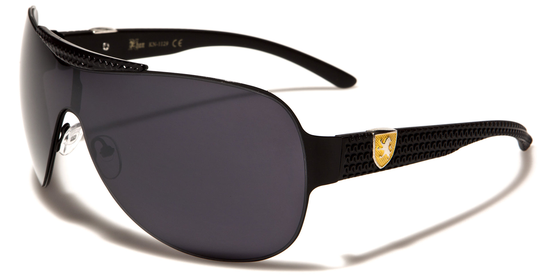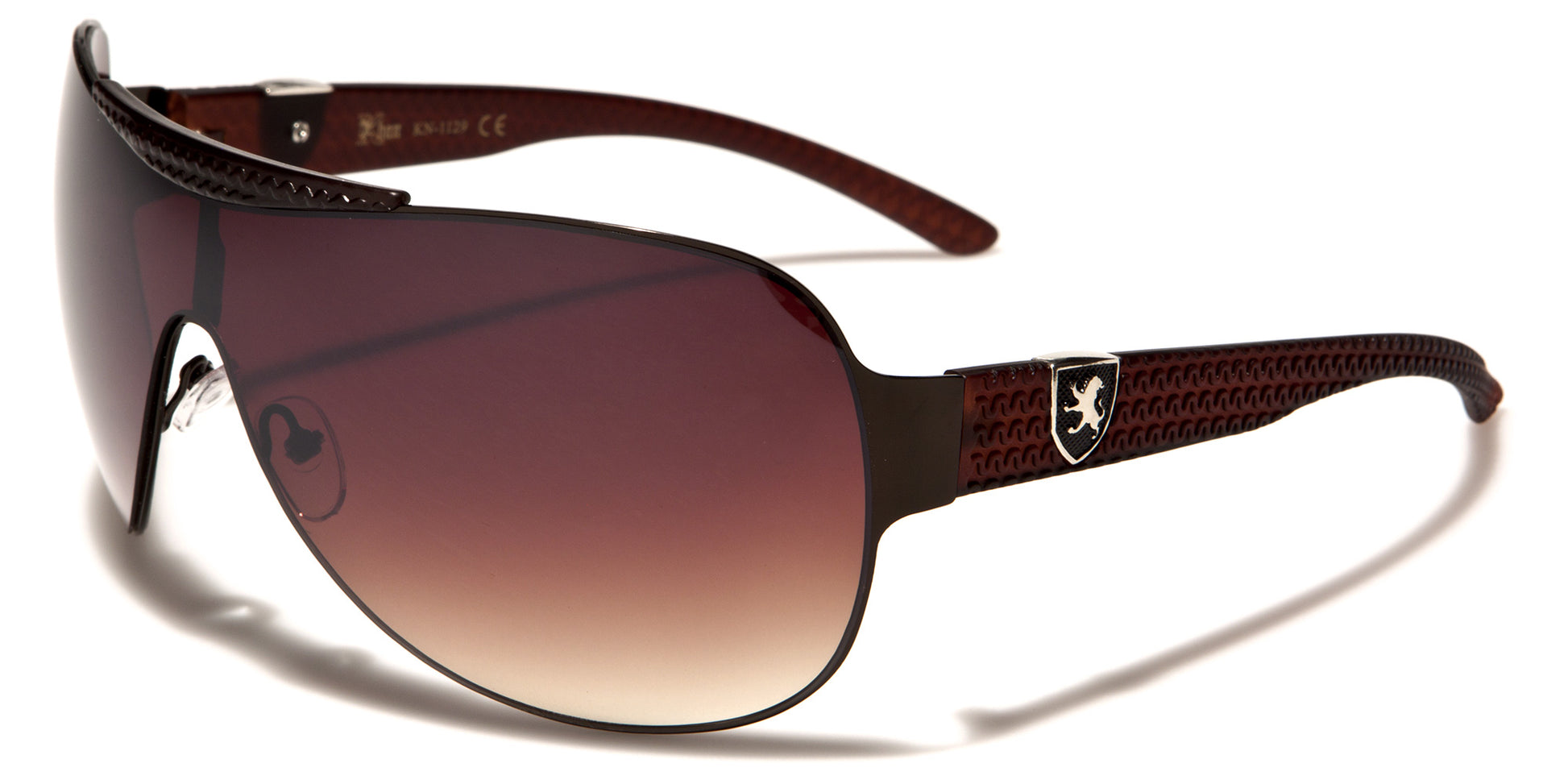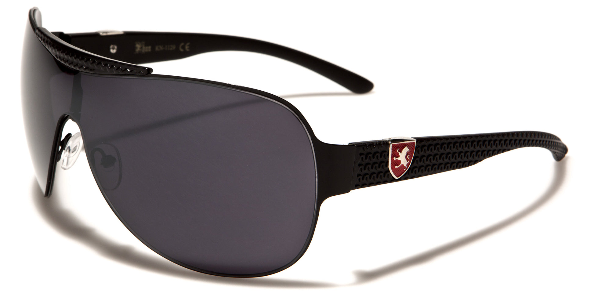 Stylish and attractive aviator sunglasses for men and women who want to make a statement, these nice shades are designed by Khan. The frame is made of metal, and the arms are plastic, with flexibility and strength that only comes with the right manufacturing process. The arms are textured with a cool pattern that feels and looks attractive. The Khan logo is displayed boldly on the side of the arms. The lenses are large and curved, and they flow together in the middle like a shield for your eyes. Choose from several lens and accent colors.