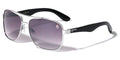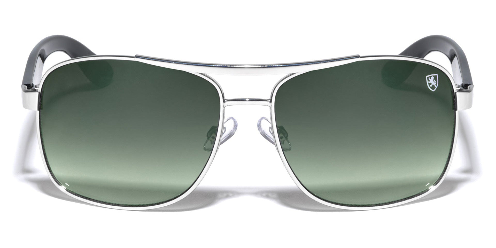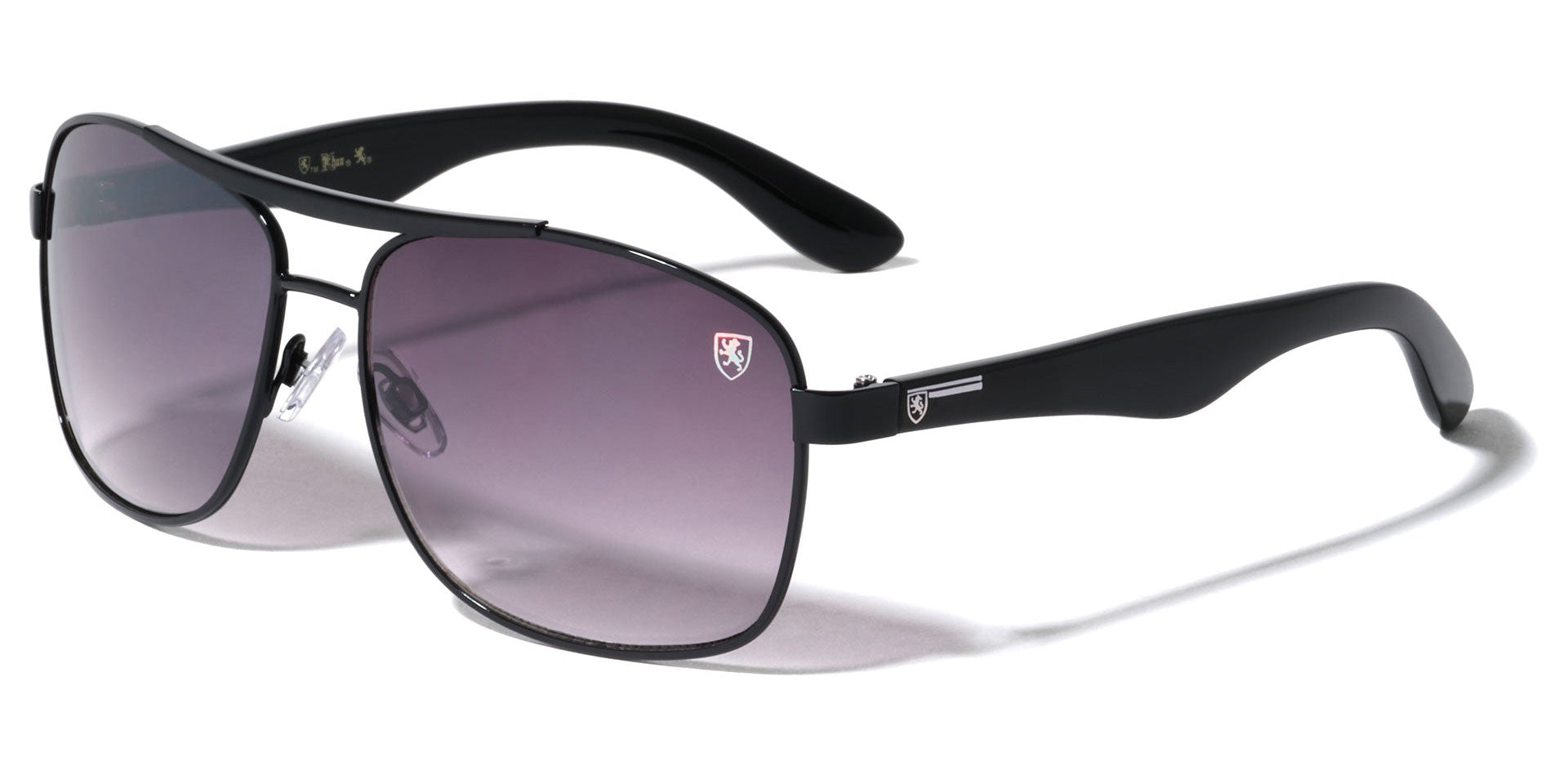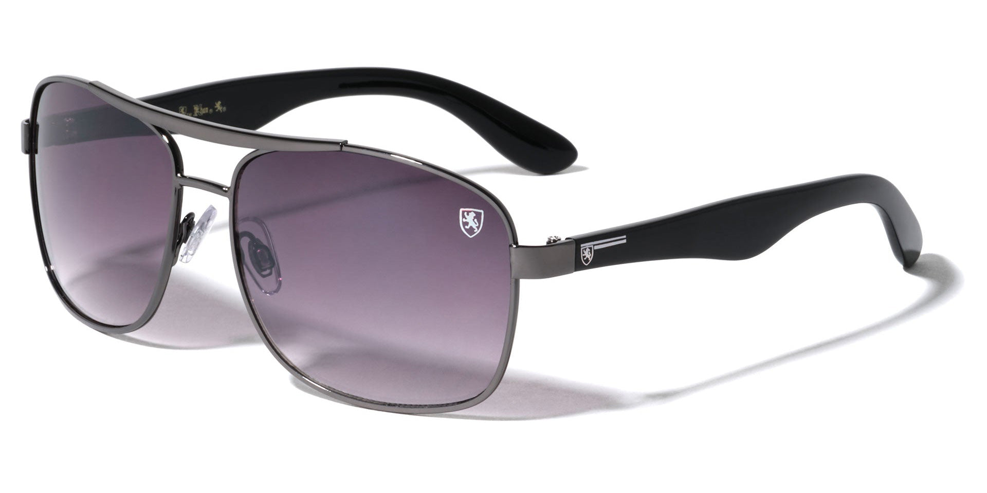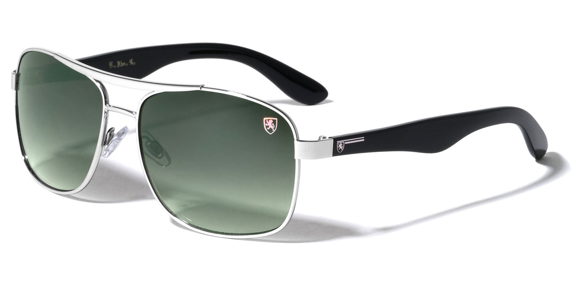 Metal and plastic combine to create these gorgeous Khan bulk sunglasses for men. The aviator-designed sunglasses feature rectangular lenses, double bars at the nose, full rims and transparent and adjustable nose pads. The colors of the frames include black, gunmetal, silver and gold, and the tips are black or tortoise. The lenses, meanwhile, come in gray, green and brown. The stems are straight at the top and are wavy at the bottom. The Khan logo of a shield with a rearing lion inside is located on the left lens at its upper left side. These sunglasses for men are a perfect way to keep fashionable as you enjoy a day in the sun!